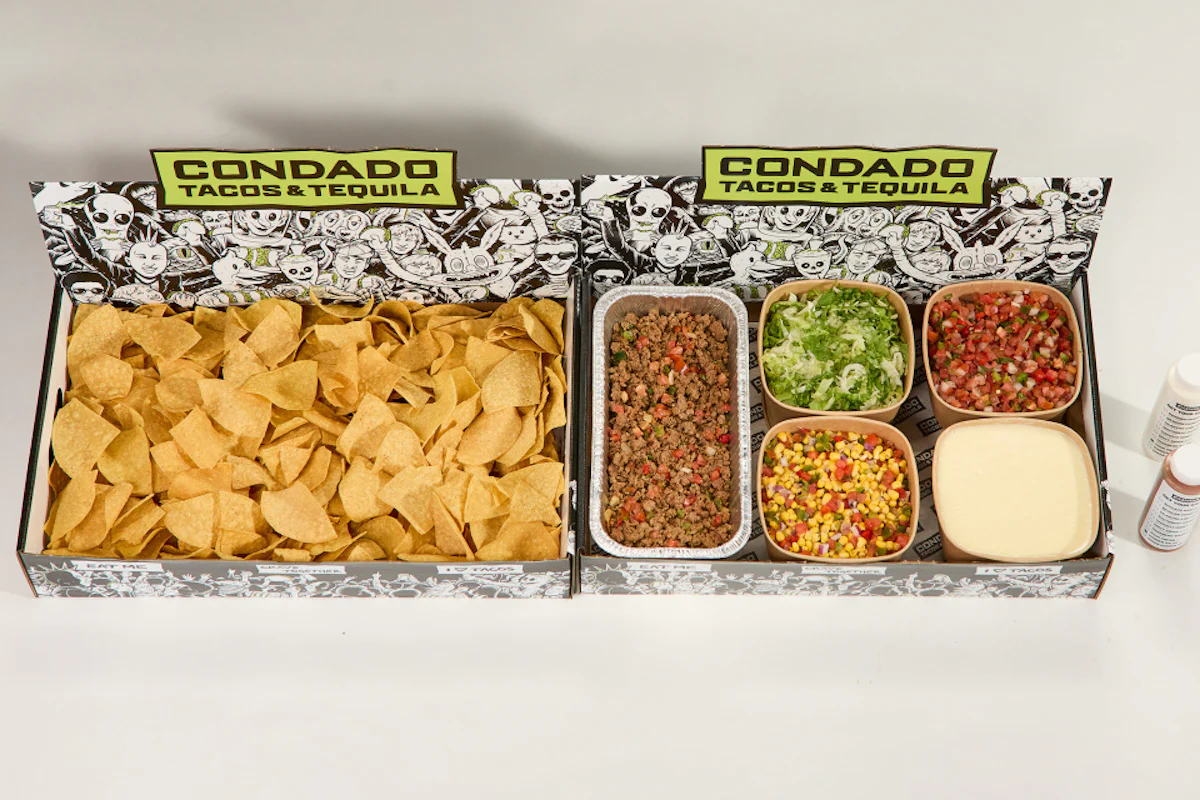 All your Condado favorites together! Choice of two suggestion tacos, Queso Blanco or Traditional Guac, chips + House Margarita to-go. Must be 21 to purchase. A valid ID must be presented upon pickup or delivery.